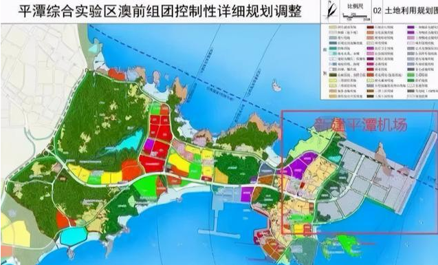平潭綜合實(shí)驗(yàn)區(qū)澳前組團(tuán)控制性詳細(xì)規(guī)劃調(diào)整示意圖,圖中紅框部分?jǐn)M建設(shè)海上機(jī)場(chǎng)