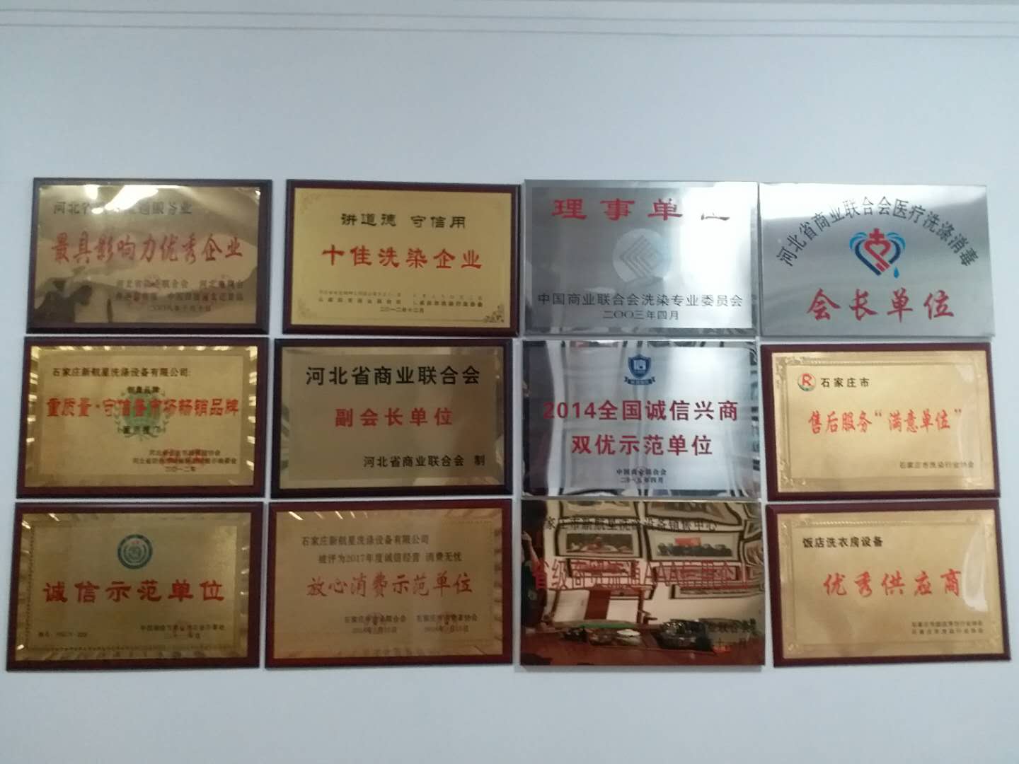 “奧運獎牌”是證明了一個運動員的競技能力,“吉尼斯證書”證明了一個人在某一項事件中是人,而石家莊新航星洗滌設備公司的“榮譽墻”則證明了公司的實力。"誠信示范單位"證書和"放心消費示范單位"證書說明石家莊新航星是一家值得信任的公司,講信用守誠信;"售后服務滿意單位"證書肯定了石家莊新航星的售后服務質(zhì)量;"蕞具影響力企業(yè)"證書和"十佳洗染企業(yè)"證書體現(xiàn)了石家莊新航星作為洗染行業(yè)的一員,為行業(yè)所作出的貢獻。