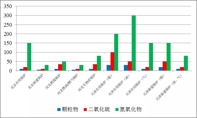 圖2  京津冀地區鍋爐污染物排放標準