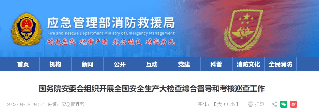 根據黨中央、國務院決策部署和全國安全生產大檢查工作安排,自4月中旬至6月底,國務院安委會組織16個綜合檢查組,對31個?。ㄗ灾螀^、直轄市)和新疆生產建設兵團安全生產大檢查情況進行綜合督導,并同步開展國務院2021年度省級政府安全生產和消防工作考核巡查及國務院安委會成員單位安全生產工作考核。